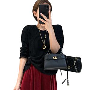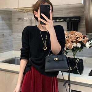 韩系设计感下摆提扣针织衫女秋季新款百搭简约休闲纯色毛衣高级感