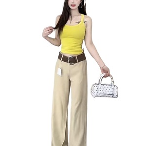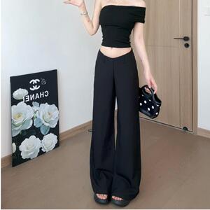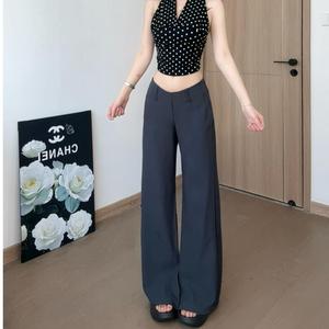 黑色中腰2025休闲裤女春夏卡其长裤宽松阔腿裤拖地喇叭裤灰灰色