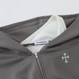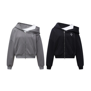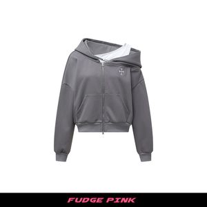 Fudge Pink 25秋季New美式复古辣妹假两件斜肩连帽卫衣开衫
