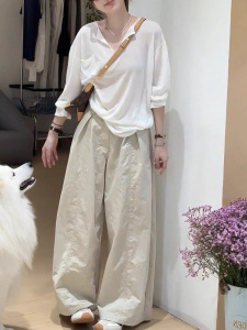 韩系杏色针织冰丝长袖T恤防晒罩衫女夏季外搭慵懒松弛感薄纱上衣