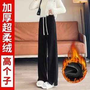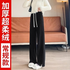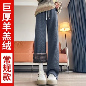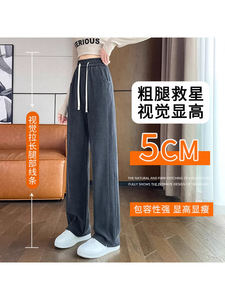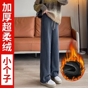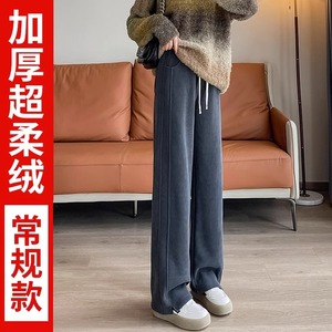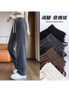 灰色窄版阔腿裤女春秋休闲高个子加长秋冬加绒雪尼尔香蕉直筒裤子