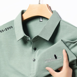 跨境男士长袖polo衫春秋新款翻领休闲宽松中年打底T恤上衣男代发
