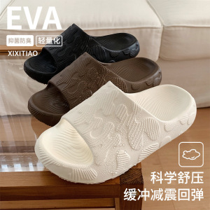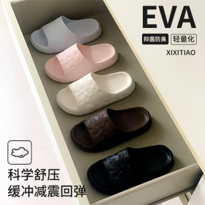 舒适休闲情侣拖鞋浴室居家软底一字男女外穿简约拼图块凉拖鞋夏季