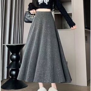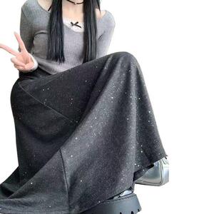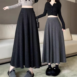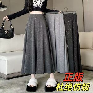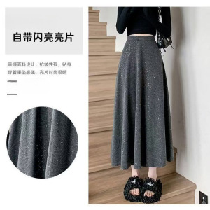 设计亮片针织半身裙秋季韩版秋冬松紧新款高腰感大摆裙亮闪闪长裙
