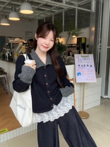 实拍 2025秋季新款韩版韩系宽松慵懒松弛感条纹翻领毛衣开衫外套