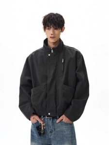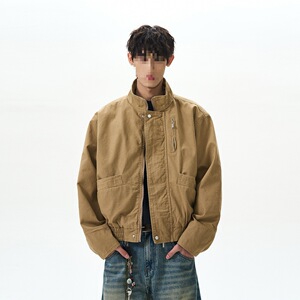 复古立领工装夹克2025春季新款美式短款男士外套飞行服宽松上衣男