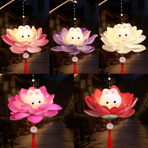 中秋节手提diy灯笼新款儿童手工材料荷花莲古风兔子花灯拍照道具
