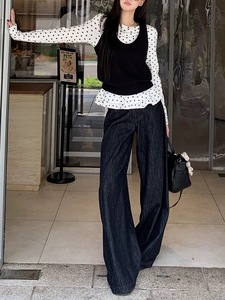 红人馆长袖t恤女2025新款秋季打底衫韩系穿搭设计感波点白色上衣