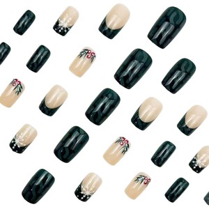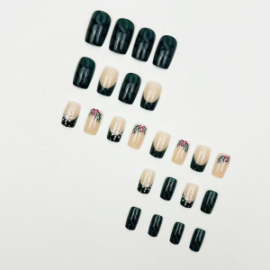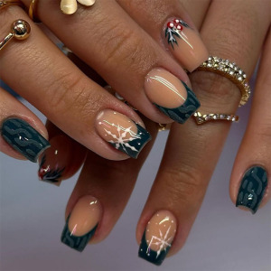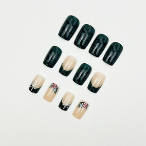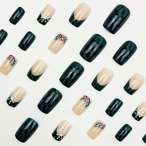 圣诞节穿戴甲红色果实雪花节日美甲绿色法式欧美假指甲片外贸美甲