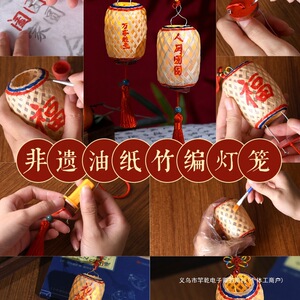 2025中秋节油纸小灯笼手工diy传统潮汕竹编迷你儿童手提礼挂件