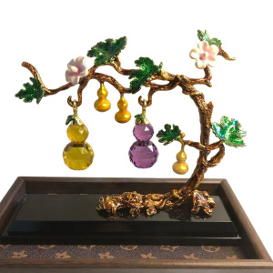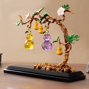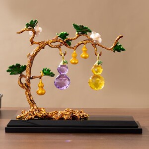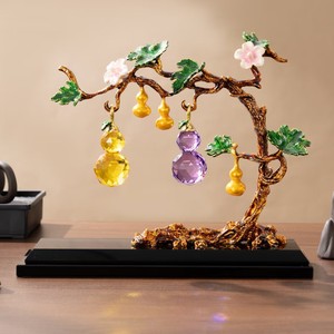 珐琅彩五福临门水晶葫芦招财家居装饰摆件客厅电视柜乔迁紫水晶