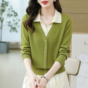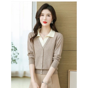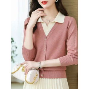 假两件POLO领针织衫毛衣女秋冬新款拼色高档保暖韩版短款打底上衣
