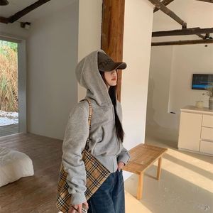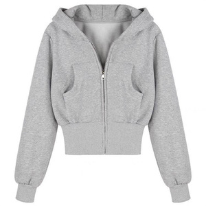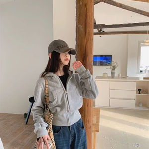 短款束腰显瘦秋冬拉链连帽卫衣新款收腰美式外套复古开衫加绒上衣