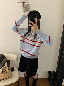 YS韩国东大门新品条纹复古撞色毛衣2025秋冬半拉链翻领针织上衣女