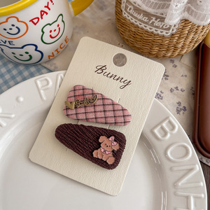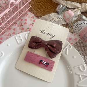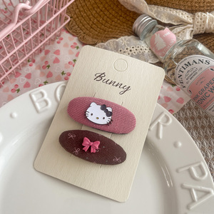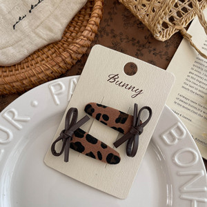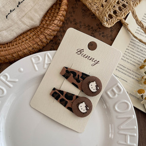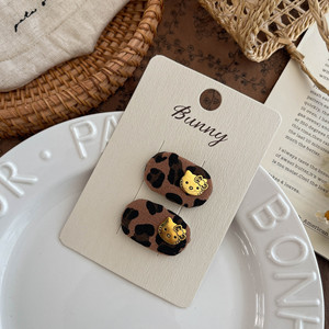 新款甜酷豹纹kt猫几何发夹儿童发饰布艺ins女孩发卡前额碎发边夹