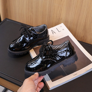 儿童皮鞋黑色小男孩英伦风亮面小皮鞋儿童单鞋一脚蹬小中大童皮鞋