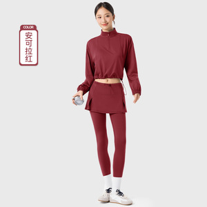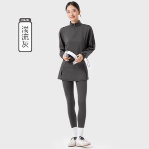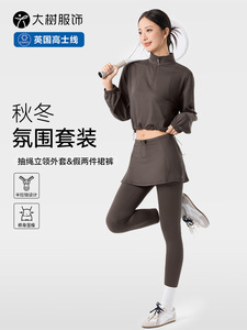 运动套装女秋冬薄绒保暖长袖健身服两件套外穿宽松休闲瑜伽服套装