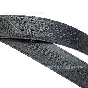 自动扣头层牛皮压花自动带男士真皮山羊纹皮带手搓纹平滑扣腰带