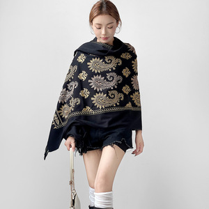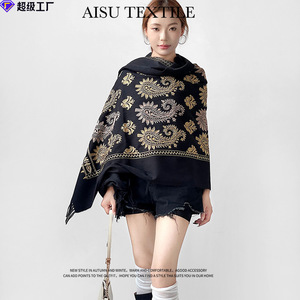 青海旅游披肩围巾佩斯利大腰果围巾民族风高级感流苏加厚保暖围巾