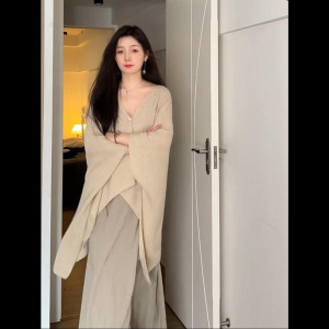 秋季新款清冷氛围感针织蝙蝠袖上衣内搭气质连衣裙套装女
