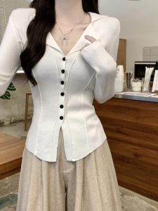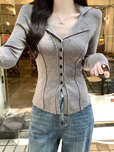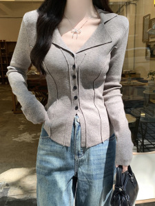 2025早秋新款女装气质时尚设计感纽扣V领修身显瘦针织衫长袖上衣