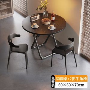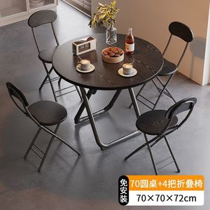 【小户型】墨黑圆桌70cm+4把折叠椅