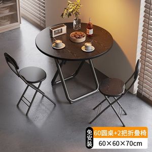 【双人首选】墨黑圆桌80cm+2把折叠椅