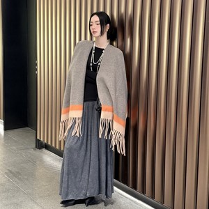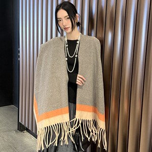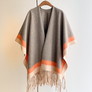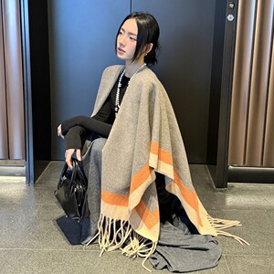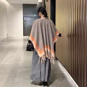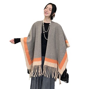 复古拼色仿羊绒流苏披肩女士秋冬时尚百搭高级感保暖外搭披风斗篷