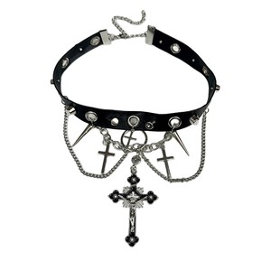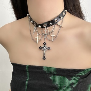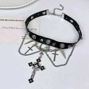 哥特朋克风黑色皮革十字架铆钉项圈女亚文化颈链choker甜酷锁骨链