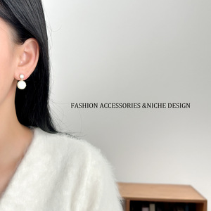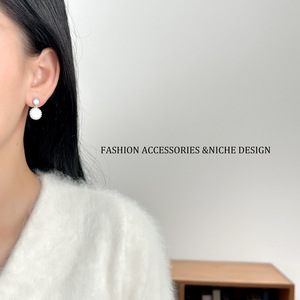 银色镶锆石琉光贝母耳环
