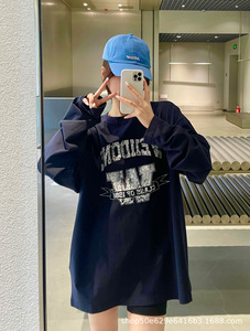 2025早秋新款韩国小众潮牌logo印花圆领宽松套头长袖T恤男女同款