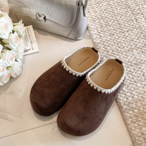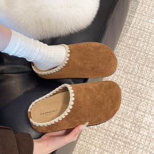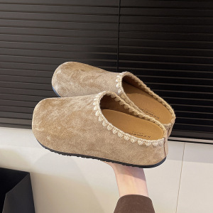 复古刺绣勃肯鞋包头半拖鞋女外穿2025秋季厚底一脚蹬内增高博肯鞋
