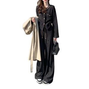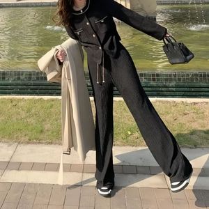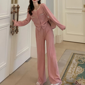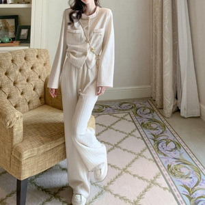 2025早秋新款气质小香风套装女休闲时尚长袖上衣阔腿裤两件套批发