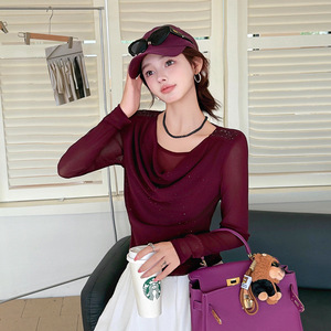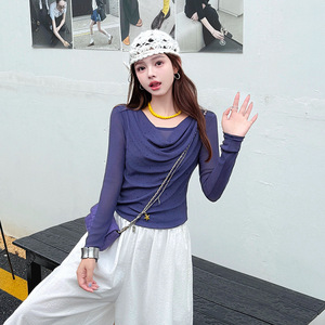 2025春秋实拍图正肩打底衫新款上衣小众长袖t恤设计感修身衬衫