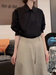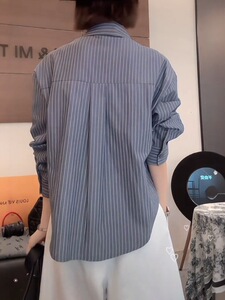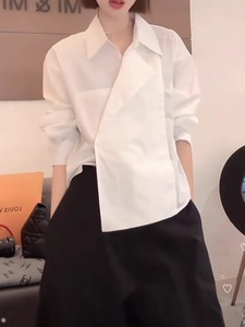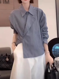 法式设计感长袖条纹衬衫2025早秋新款大码胖MM宽松显瘦不规则上衣