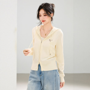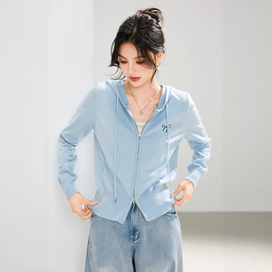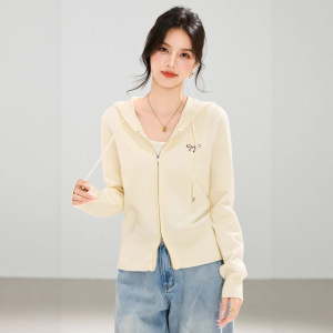 美式双拉链连帽针织开衫外套女2025秋季新款休闲风长袖小个子毛衣