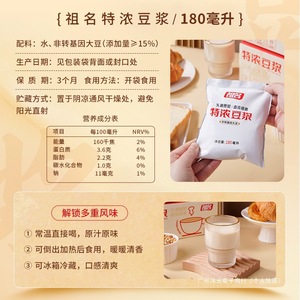 祖名特浓豆浆豆奶纯豆浆营养不添加早餐奶即饮便携袋装180ml*12袋