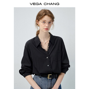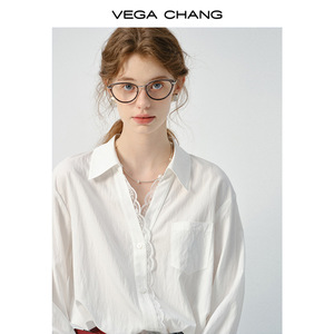 VEGA CHANG白色衬衫女长袖2025年秋装新款欧若风蕾丝薄款宽松上衣