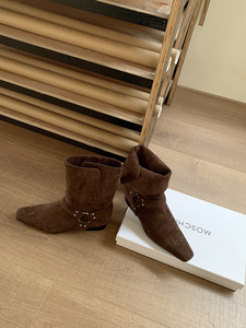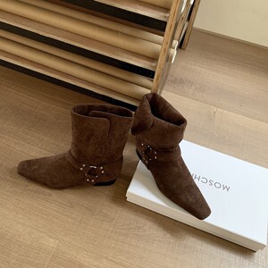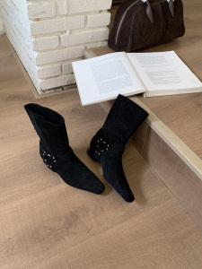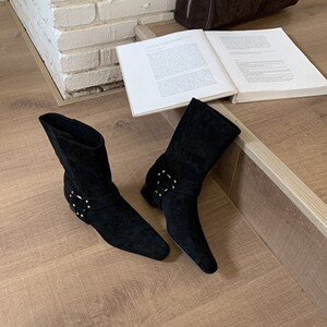 法式时髦设计感皮带扣粗跟瘦瘦靴女秋冬外穿通勤百搭一脚蹬短筒靴