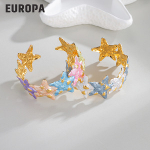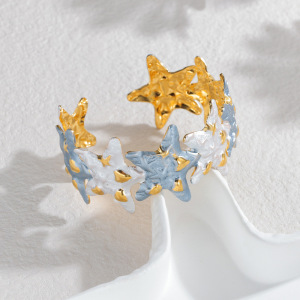 海洋风不锈钢滴油海星开口手镯不掉色18k金时尚创意轻奢手镯高版