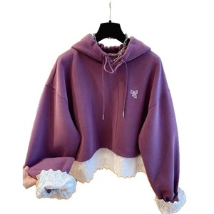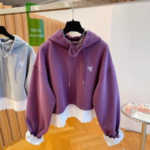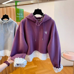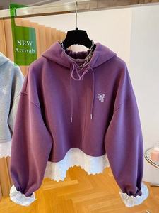 超好看下摆蕾丝花边拼接紫色卫衣女2025新款宽松减龄假两件上衣春