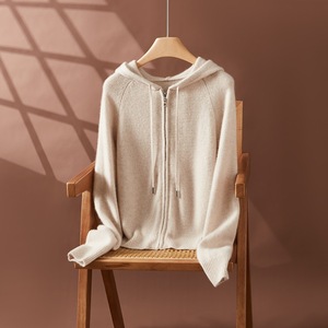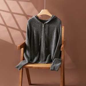 五针三股加厚针织开衫女式山羊绒毛衣外套秋冬新款连帽抽绳设计感