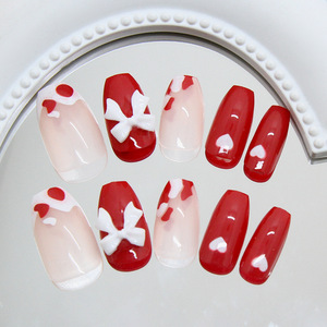 红色爱心蝴蝶结奶牛纹欧美ins风显白氛围感可拆卸穿戴甲24片