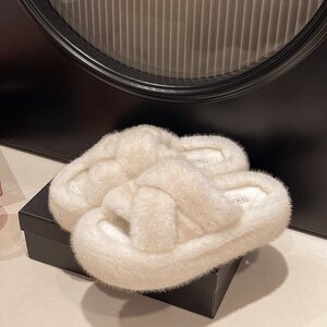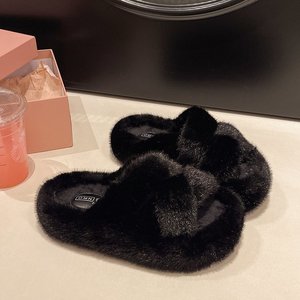 毛毛拖鞋女外穿2025秋冬新款外出厚底加绒毛毛鞋时尚洋气家居棉拖