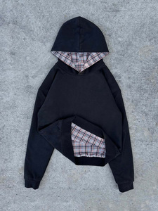 欧美跨境2025秋冬新款亚马逊美式高街嘻哈双面穿复古格子休闲卫衣
