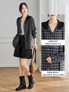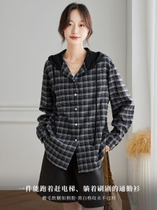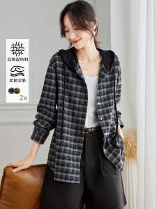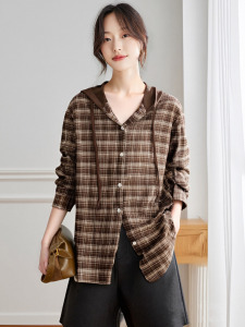 棉茧 格子衬衫女长袖2025秋装新款文艺连帽上衣时尚百搭外穿衬衣