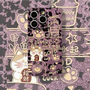 适用iPhone17ProMax紫豹纹爱财猫15/14支架13/12苹果16手机壳新款