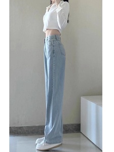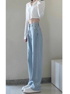 浅色百搭宽松直筒牛仔裤女秋季大码胖mm高腰显瘦阔腿梨形身材裤子