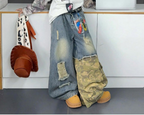 迷彩拼接牛仔裤
