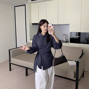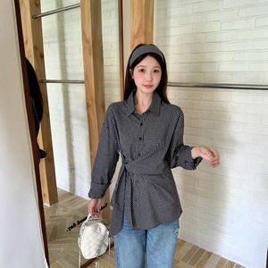 大码女装秋季新款法式设计感绑带收腰不规则衬衫小众上衣